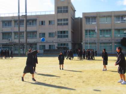 冬型の気圧配置にも負けず、昼休みのグラウンドにはたくさんの生徒の姿が。