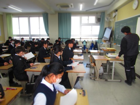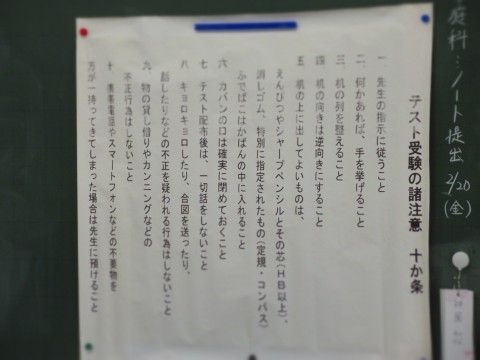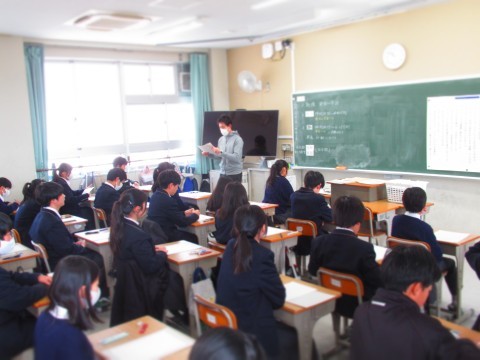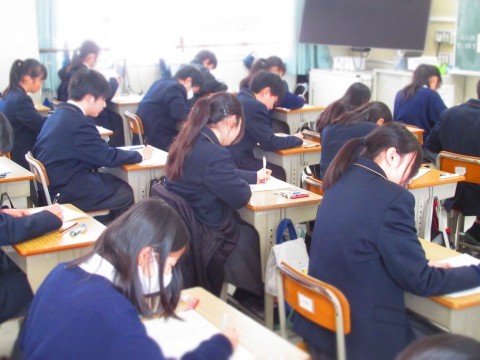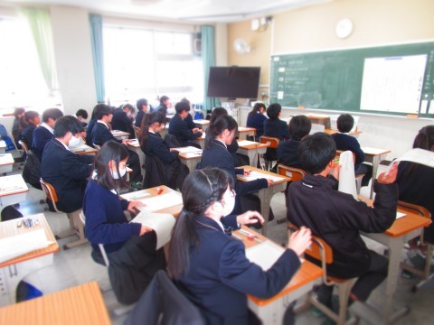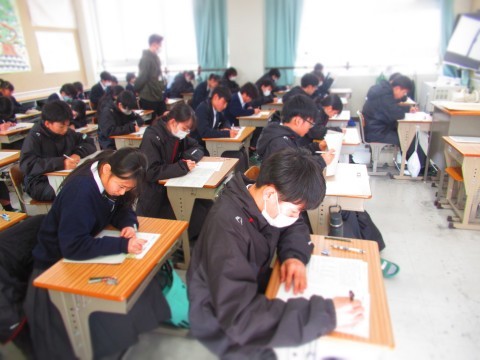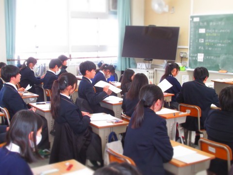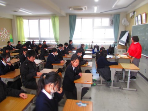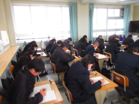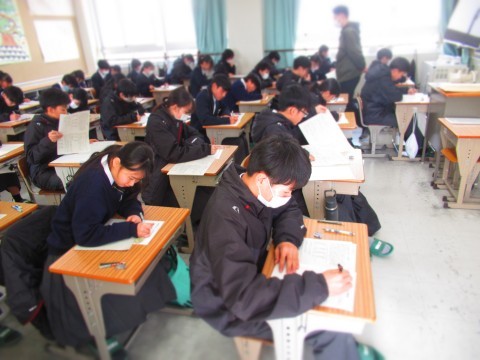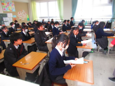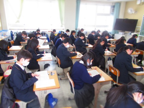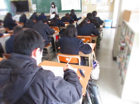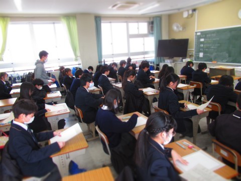 1・2年生学年末テスト開始4日前の13日(金)、朝の時間はテスト勉強にあてています。