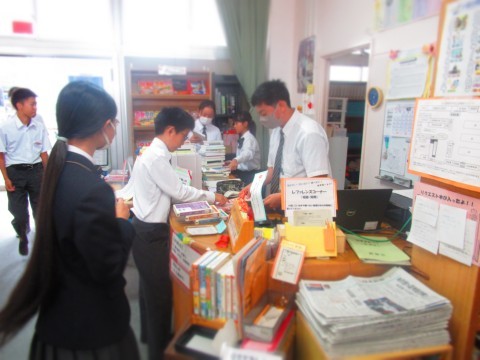 図書委員さんも校内放送と貸し出しのお手伝いに来てくれています。