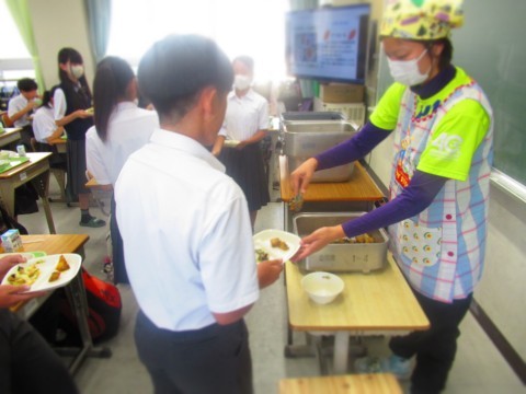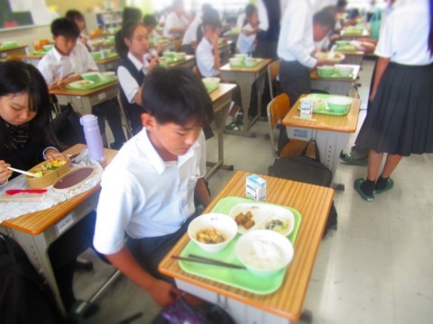 給食時間中のようすです。