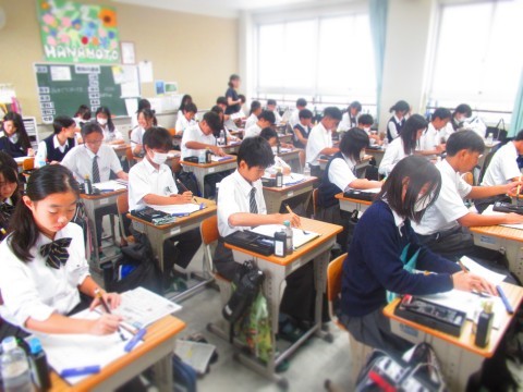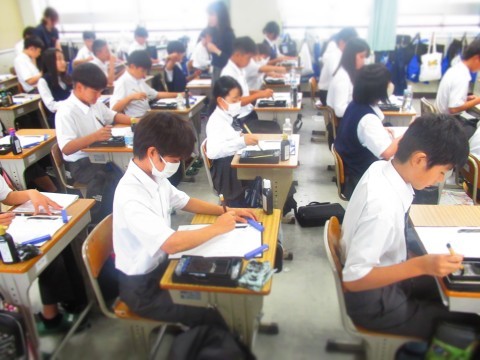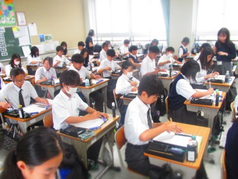 中高連携授業として行った「書写」の授業は、6日(月)に4クラス、残りの4クラスは27日(月)に実施予定です。