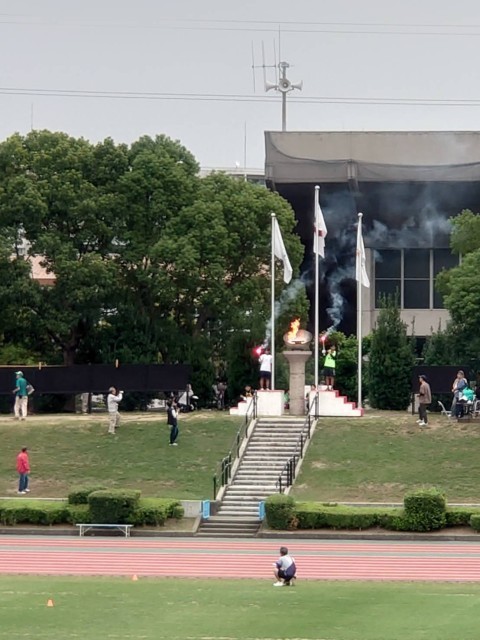 堺市民オリンピックが金岡陸上競技場で開催され、本校3年生西野翔琉さんが聖火の大役を務めました。