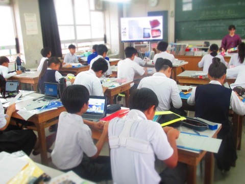 1年生数学の授業と同時間に、1年生保健体育科の授業にも専門指導員の先生が来られました。