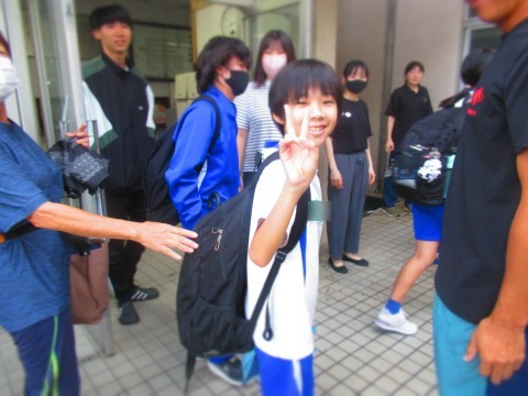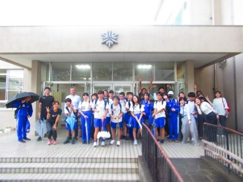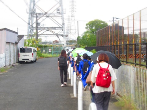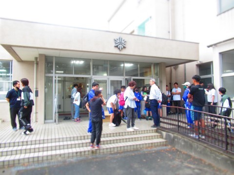 今日は朝からたけのこ学級の生徒は、合同スポーツ大会の会場である鴨谷体育館に向け8時すぎに学校を出発しました。