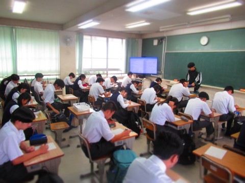 1年生数学の授業と同時間に、1年生保健体育科の授業にも専門指導員の先生が来られました。