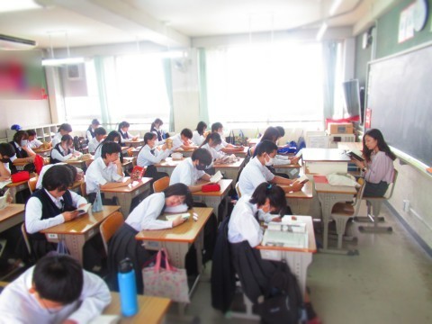 中高連携授業として行った「書写」の授業は、6日(月)に4クラス、残りの4クラスは27日(月)に実施予定です。