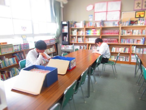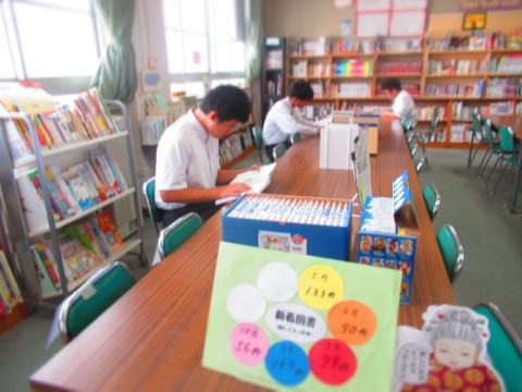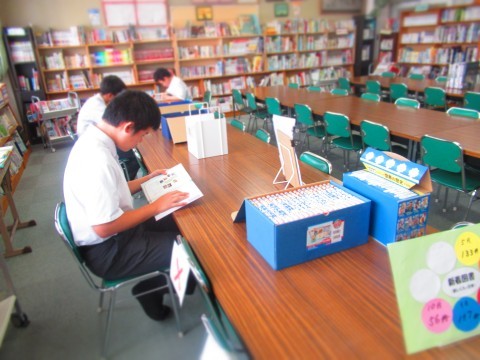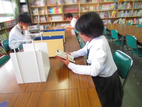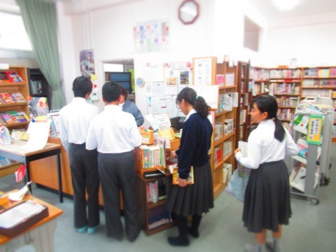 「読書の秋」真っ最中の中、短いお昼休みですが、図書室には多くの生徒が来室しています。