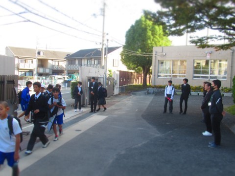 今日は朝からたけのこ学級の生徒は、合同スポーツ大会の会場である鴨谷体育館に向け8時すぎに学校を出発しました。
