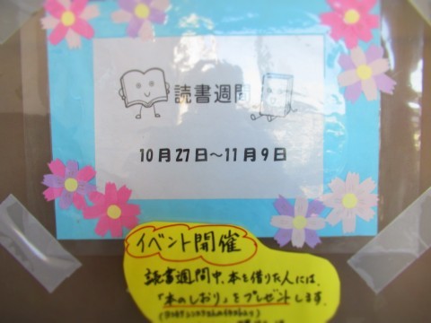 読書週間中、本を借りた人には「本のしおり」のプレゼントがあります。