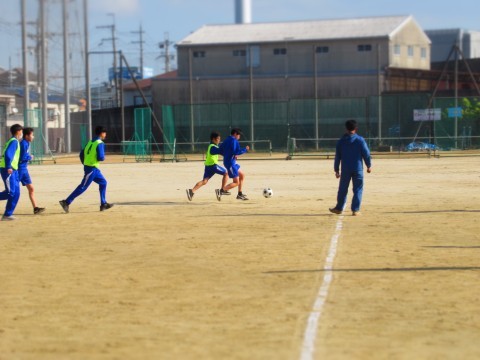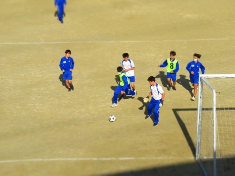 3年生体育では、サッカードリブル技術のテストを行っています。