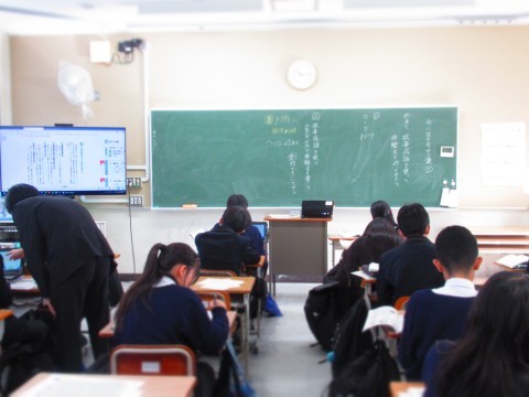 1年生国語科の授業に、堺市教育センターより専門指導員の先生が来られました。