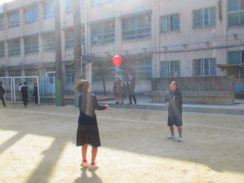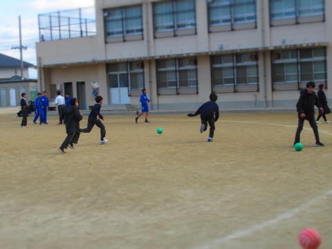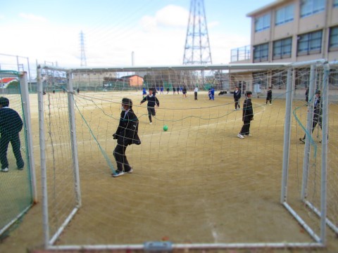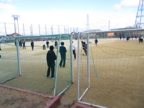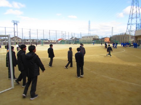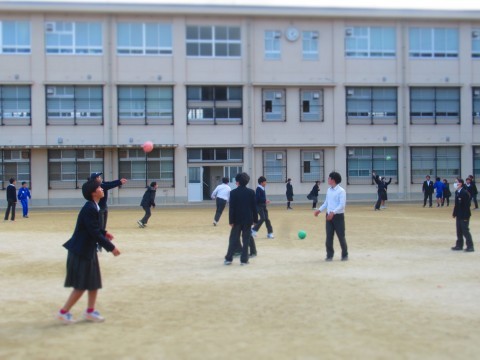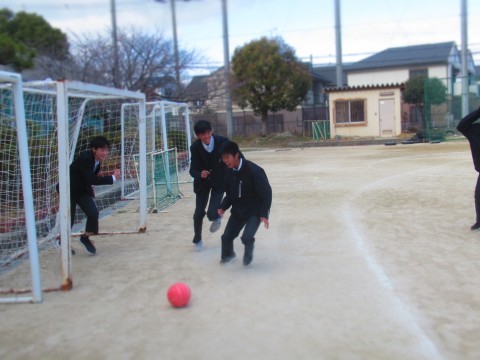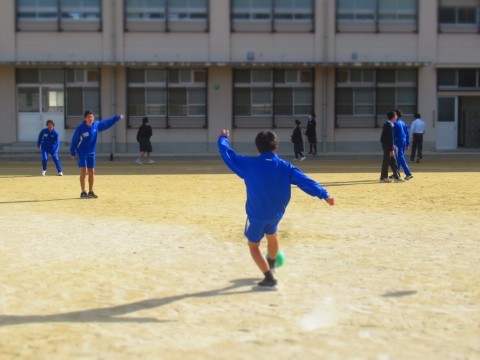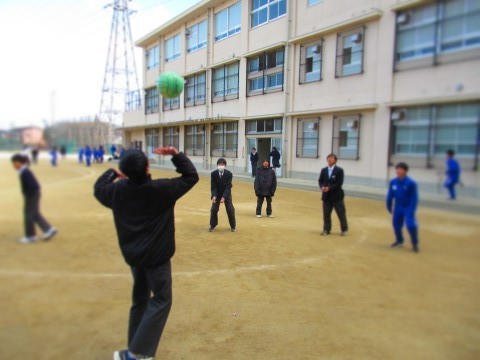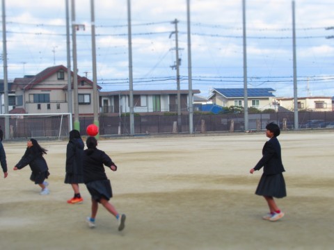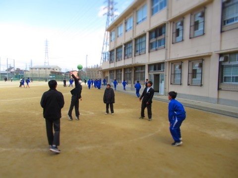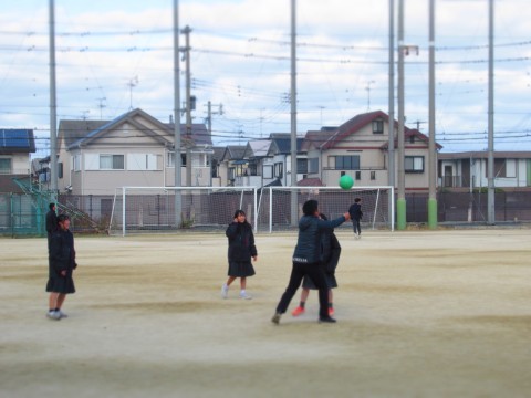 風速5m/sの冷たい北風が吹く昼休みのグラウンドには、元気にボール遊びをする生徒の姿が⛄
