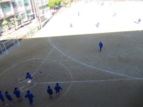 風速5m/sの冷たい北風が吹く昼休みのグラウンドには、元気にボール遊びをする生徒の姿が⛄