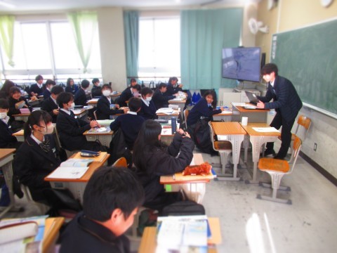 2年生は職業体験セミナーに出かけていますが、1・3年生は各教科の授業を学校で受けています。