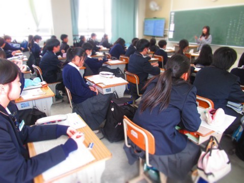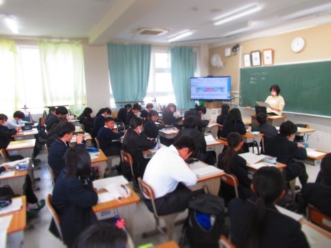 校内研修(公開授業)には、授業担当者以外の職員全員が参観に行きました。