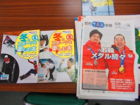 図書室には現在開催中の冬季オリンピックを楽しむための本も用意されています。