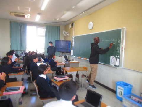 1年生英語の授業は、NSの先生が主導し実施しています。