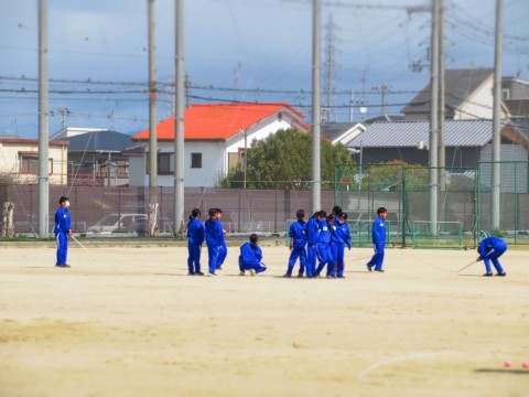 1年生は1限、クラスマッチ(3月16日実施)に向けた全体練習をグラウンドで実施。