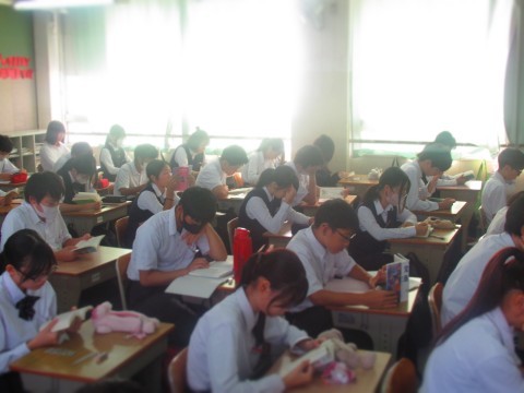 中間テスト終了翌日、朝から読書に励む2年生の姿がそこにありました。