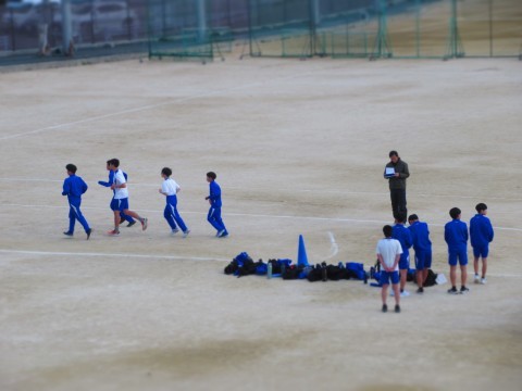 ペース走の最中ですが、一周ごとにカメラ目線・ピースを向けてくれる生徒(写真7枚め)。