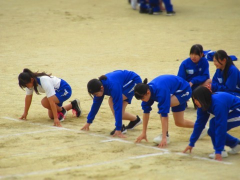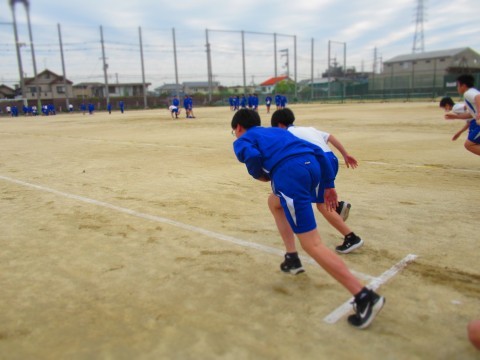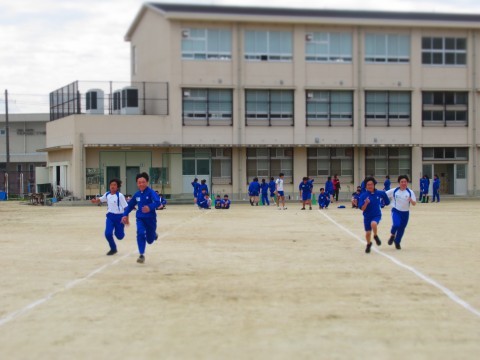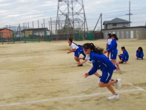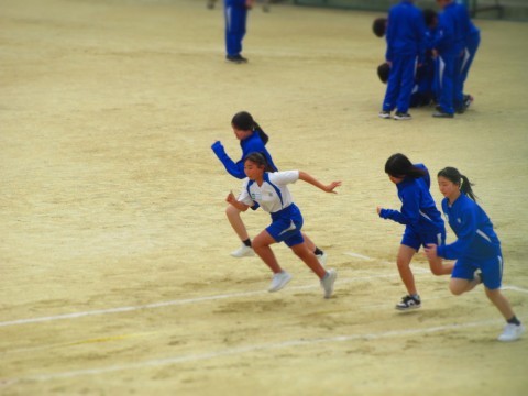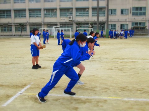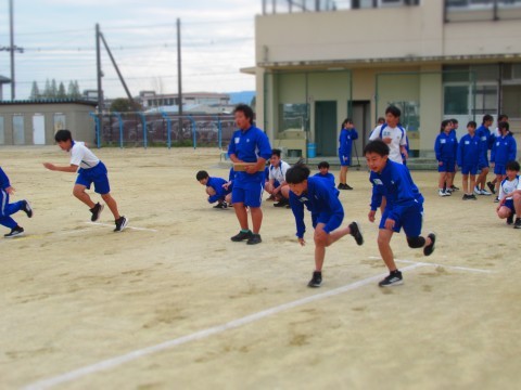 2年生は、男女ともに新体力テストの50m走を計測しています。