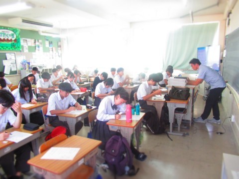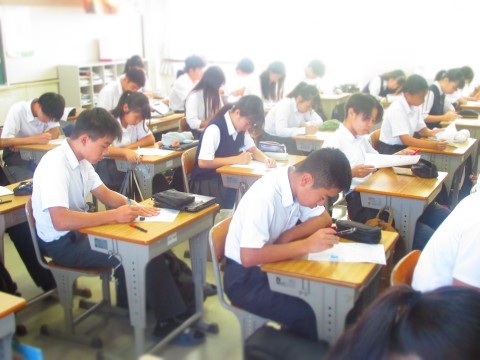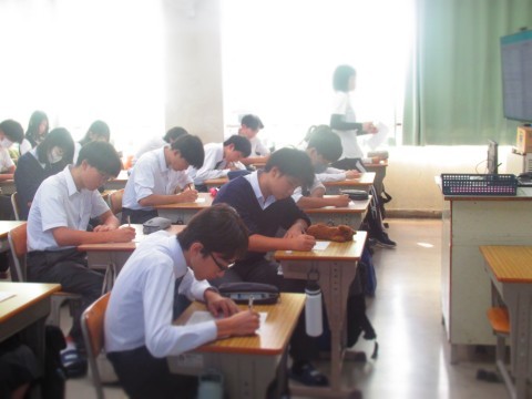 この日は全学年とも、テスト勉強の後、国語と理科の試験を受けました。
