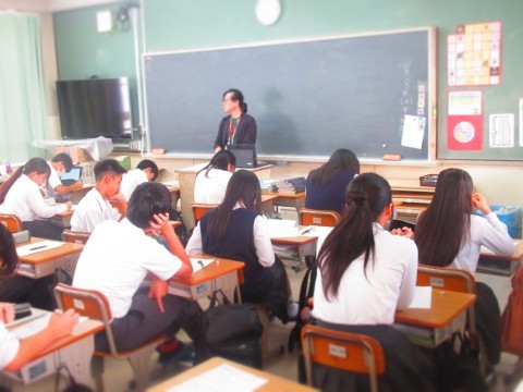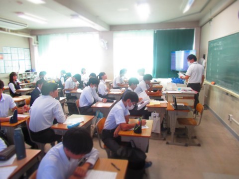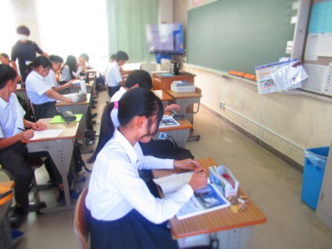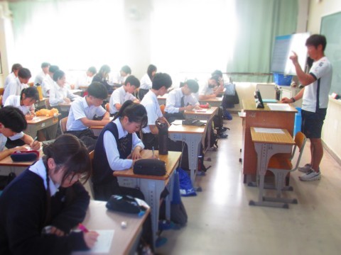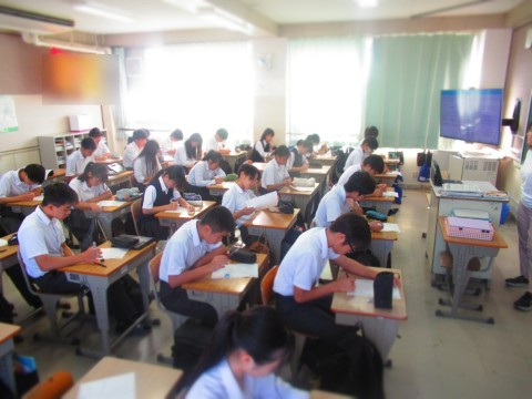 国語の試験直前だということもあり、作者を言い合ったり漢字を覚えている生徒がいました。