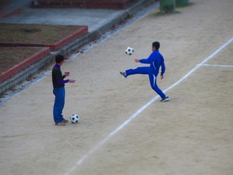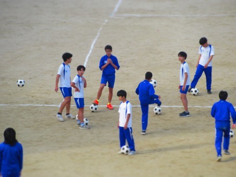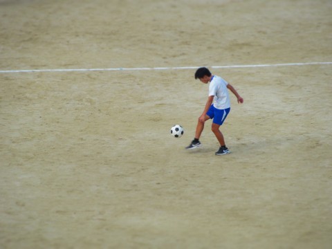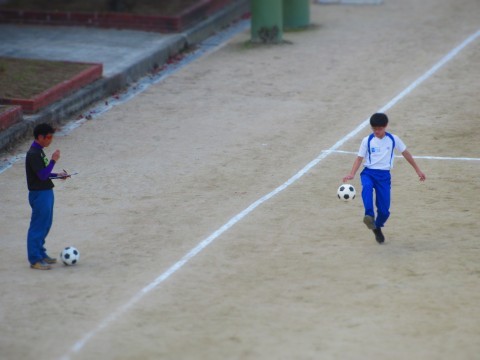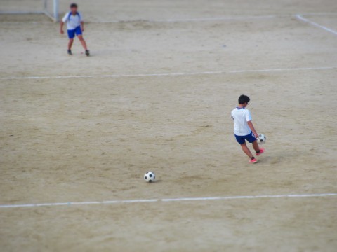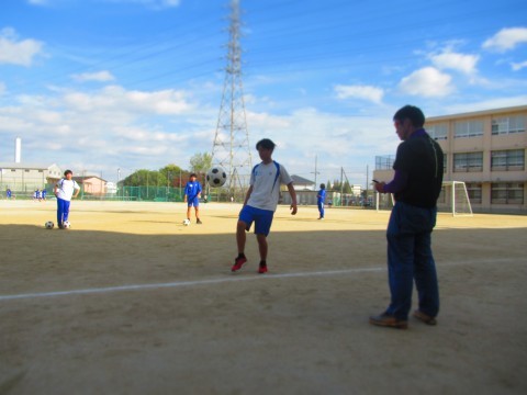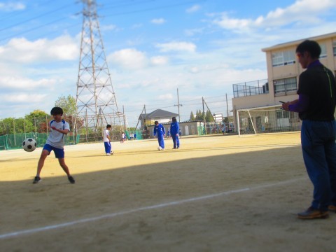 3年生体育で取り組んでいるサッカーのゲームに、3年生担任の先生も参戦し、試合は盛り上がっていました。