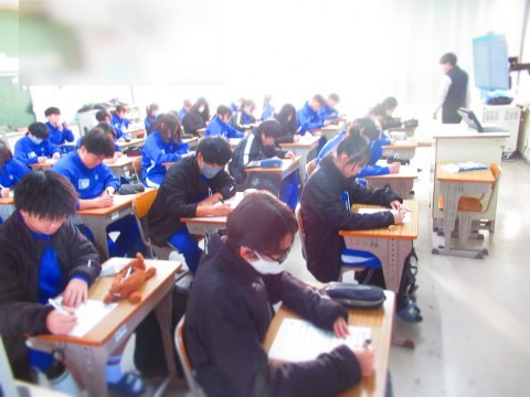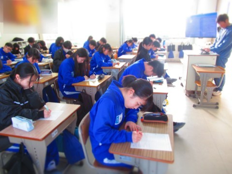 試験2日めに挑む3年生。