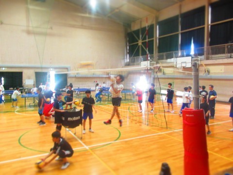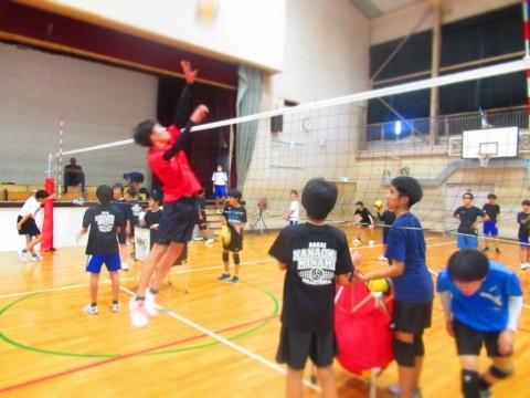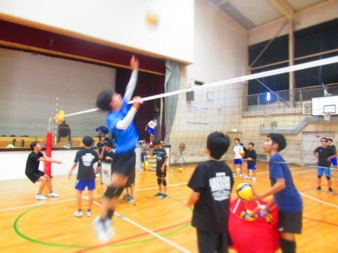 男子バレーボール部の練習(スパイク練習)では、思い切りジャンプをし、腕を振り下ろし凄まじいスピードボールを放っています。