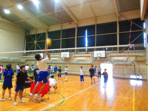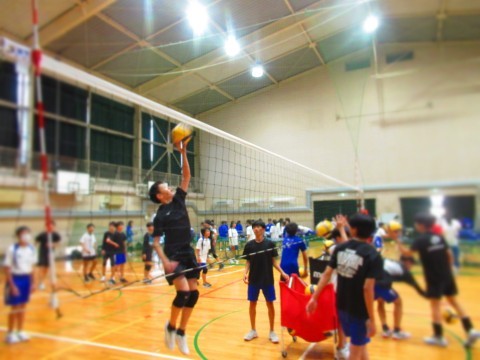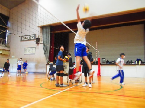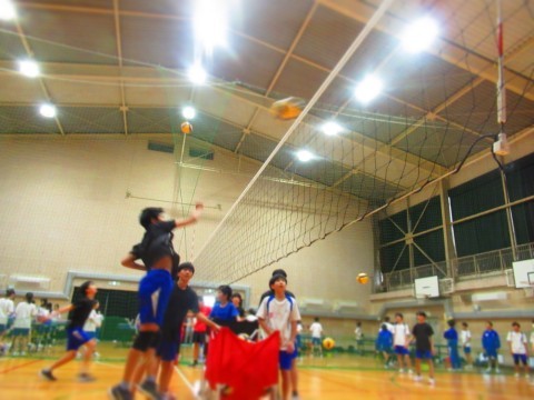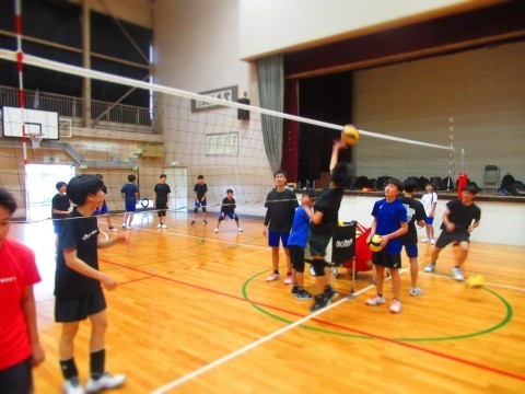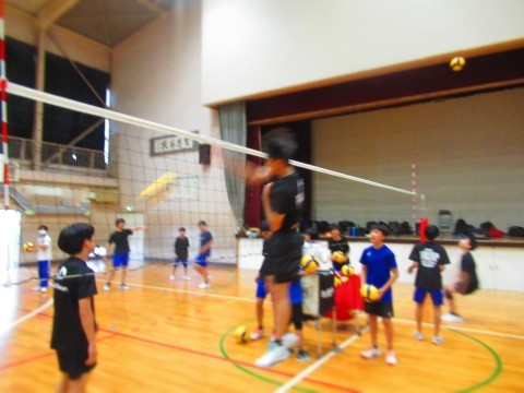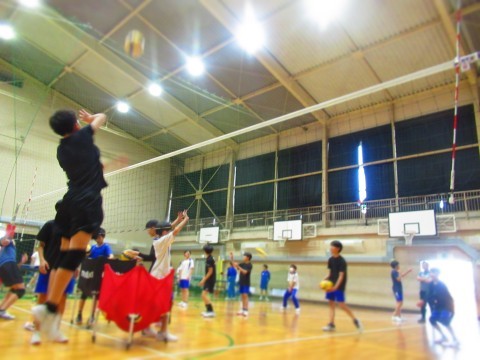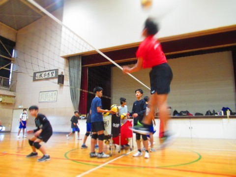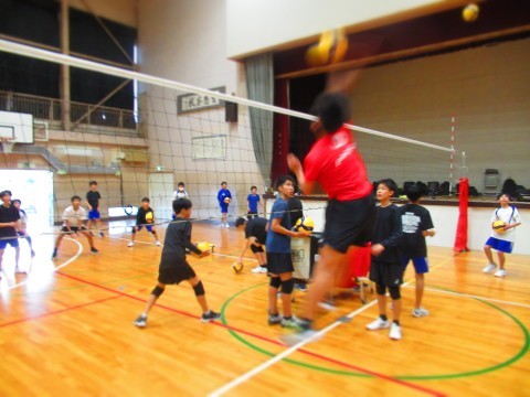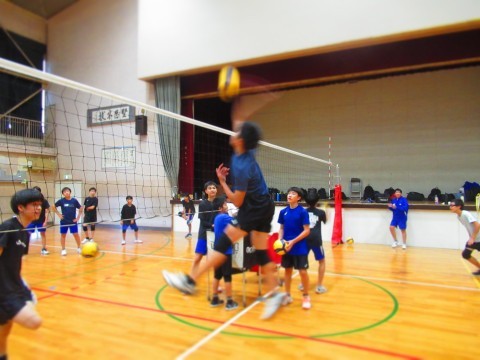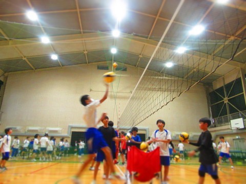 男子バレーボール部の練習(スパイク練習)では、思い切りジャンプをし、腕を振り下ろし凄まじいスピードボールを放っています。