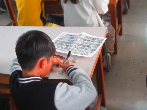 14日(火)の生徒向けの展示見学に向けて、放課後に係生徒で準備を行いました。