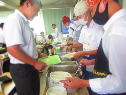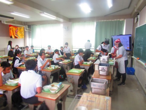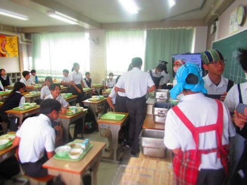 給食時間中はみんなで協力して・・・