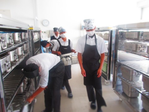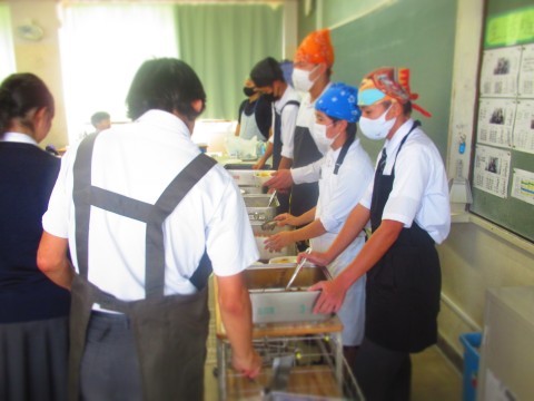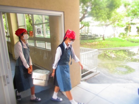 週の始まり、給食当番がかわってもスムーズに準備できています。