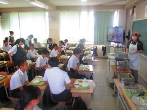 給食時間はみんなで楽しく協力して取り組むことができています。