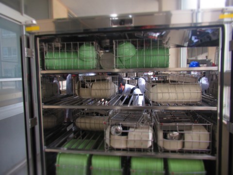 配膳準備・食缶運搬のようすを紹介します。