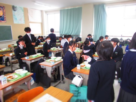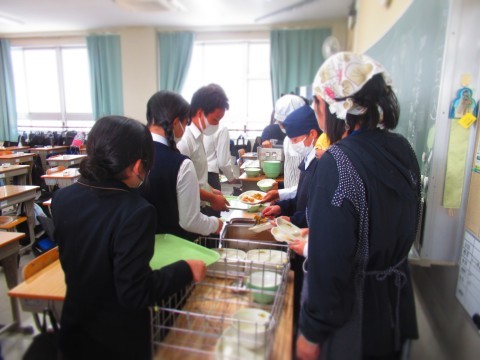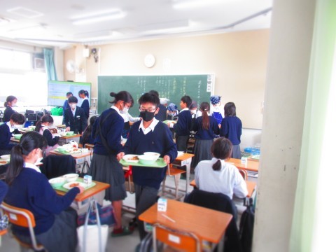 16日(木)、給食時間中のようすです。