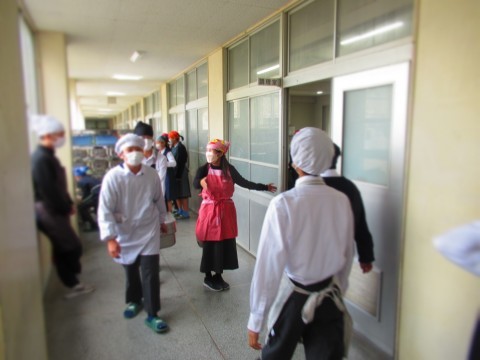 給食当番さんがしっかりと働いてくれています。