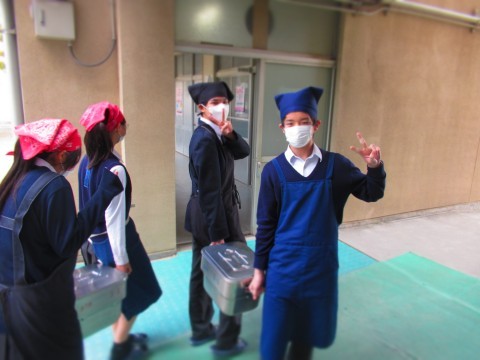 明日から給食当番がかわりますので、エプロン・マスク・三角巾を忘れずに!