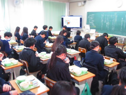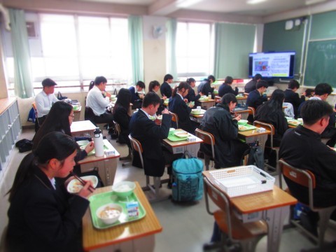 3年生は試験だったので、給食は1・2年生で実施。