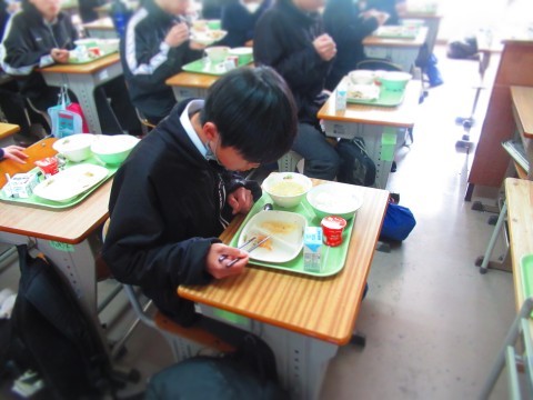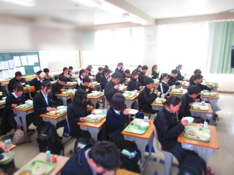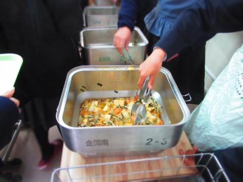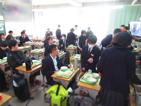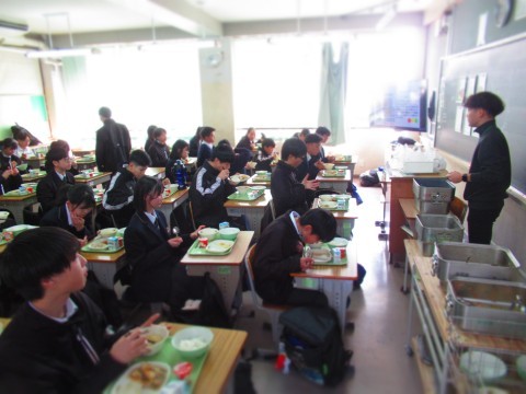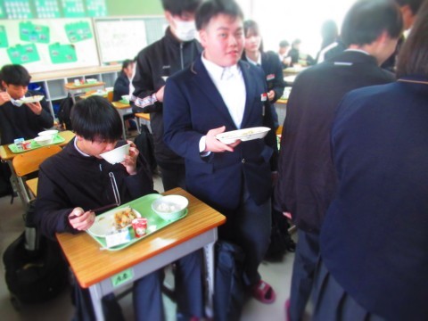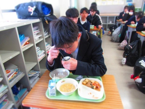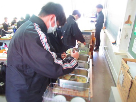 3年生は試験だったので、給食は1・2年生で実施。