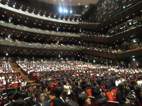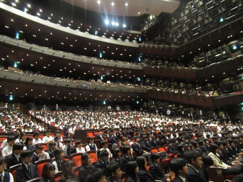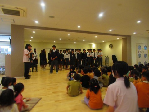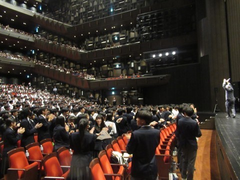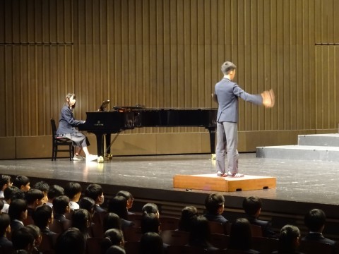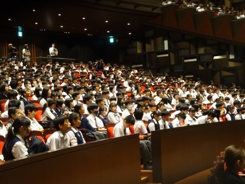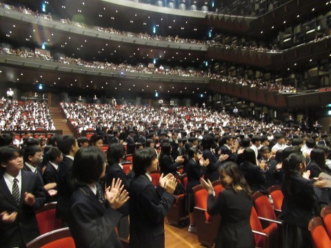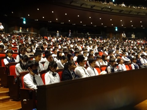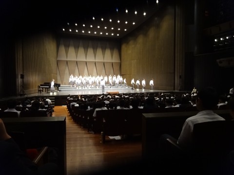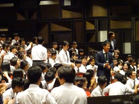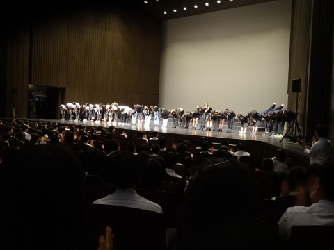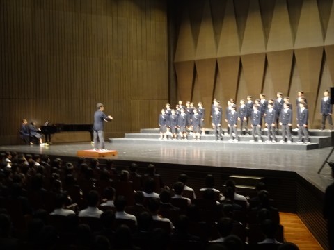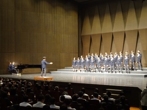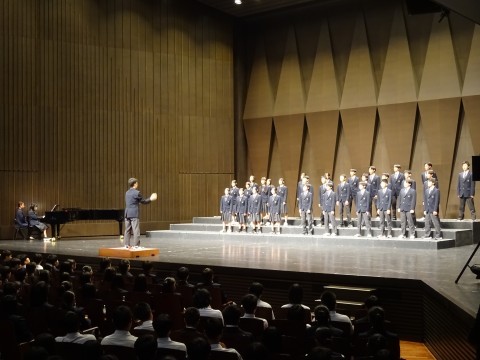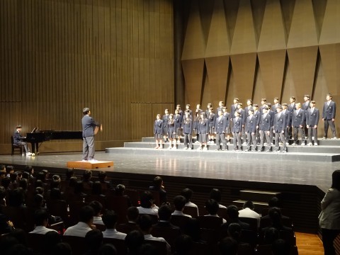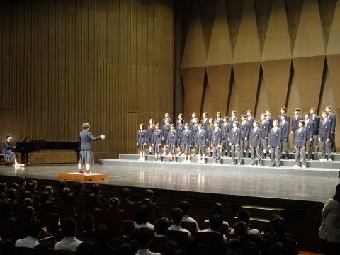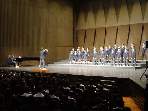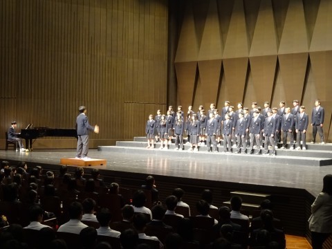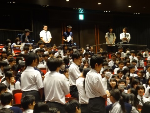 生徒会有志企画が終わり、生徒全員で校歌斉唱をしました。