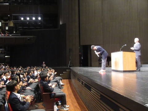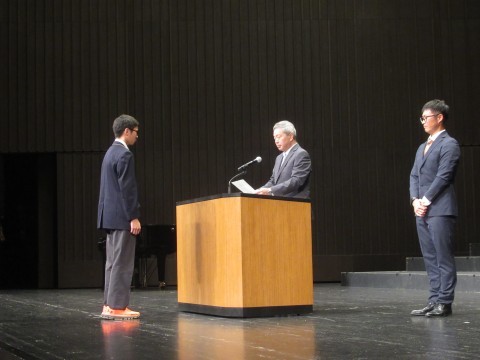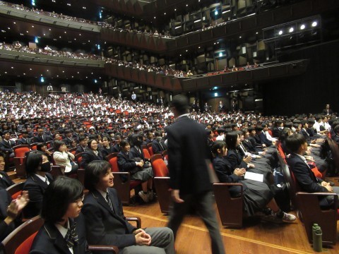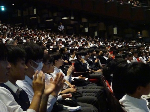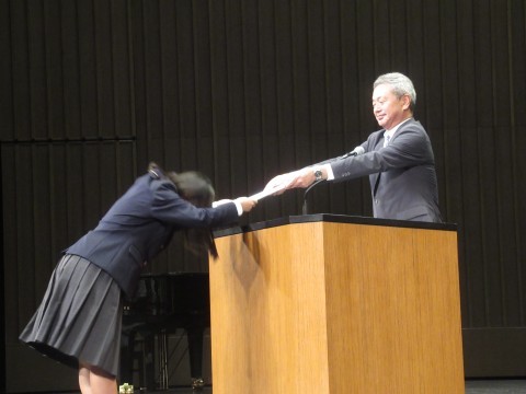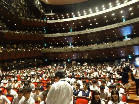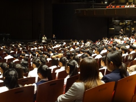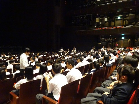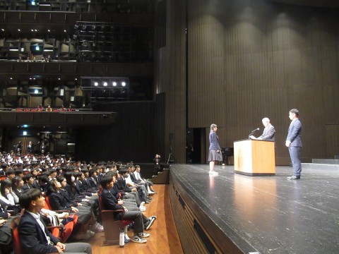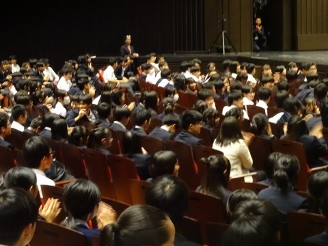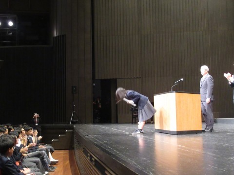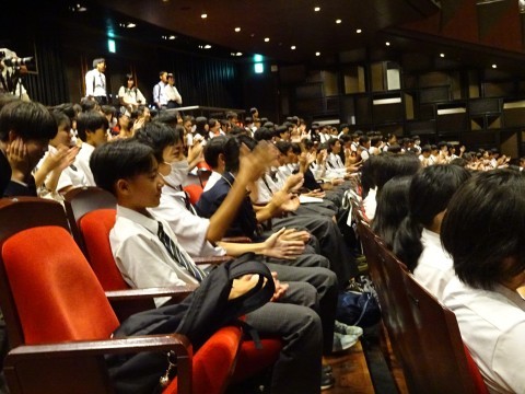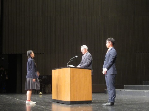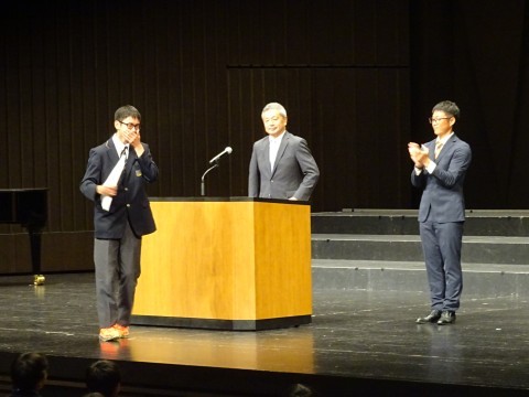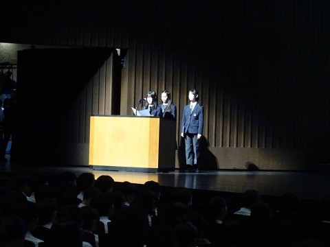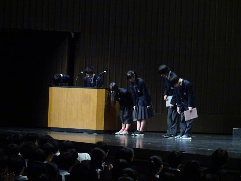 3年生9クラスの合唱が終わると、生徒会役員からの感想と、観客(生徒・教員)へのインタビューがありました。
