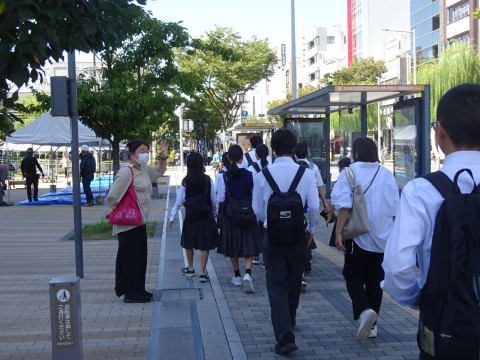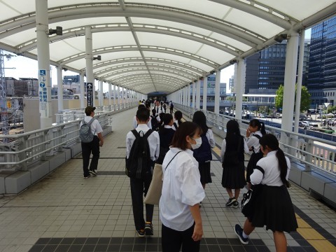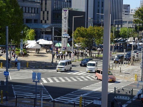 写真は、南海堺東駅周辺、歩道橋、フェニーチェ堺周辺でのようすです。