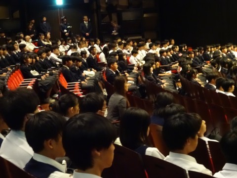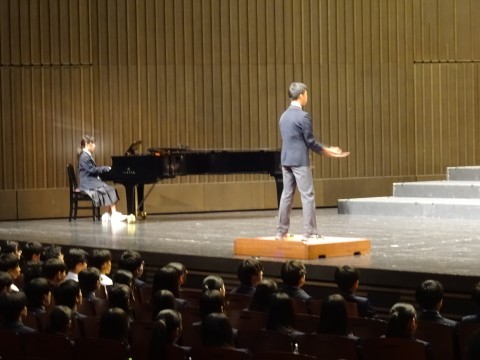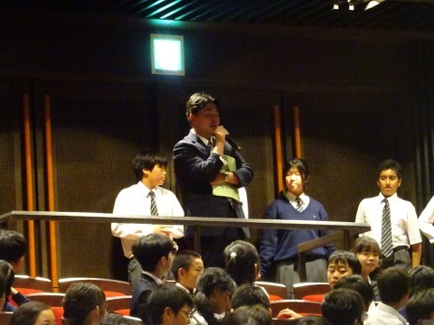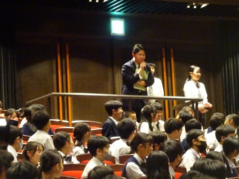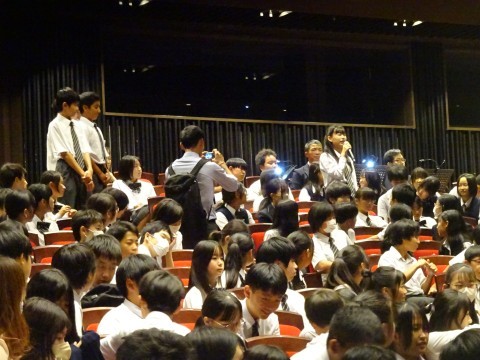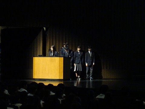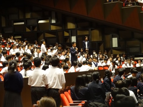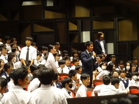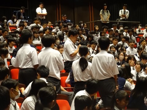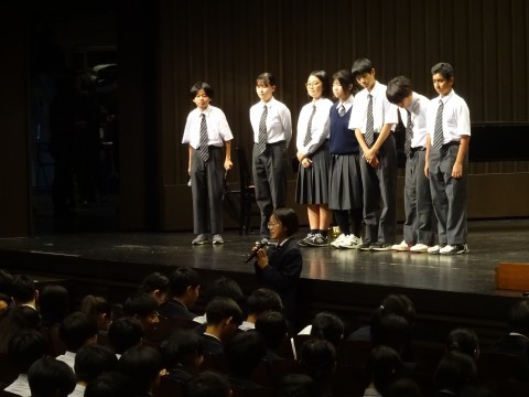 3年生9クラスの合唱が終わると、生徒会役員からの感想と、観客(生徒・教員)へのインタビューがありました。