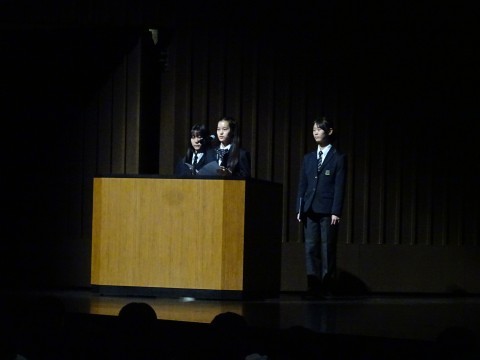 生徒会役員から3年生合唱コンクールの感想と、会場にいる先生・生徒へのインタビューがありました。