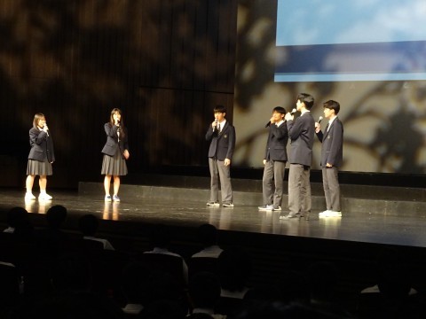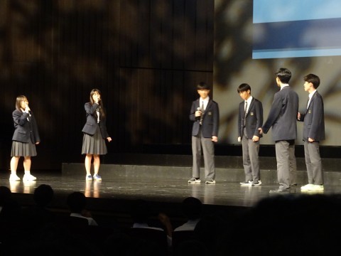 生徒会役員から3年生合唱コンクールの感想と、会場にいる先生・生徒へのインタビューがありました。
