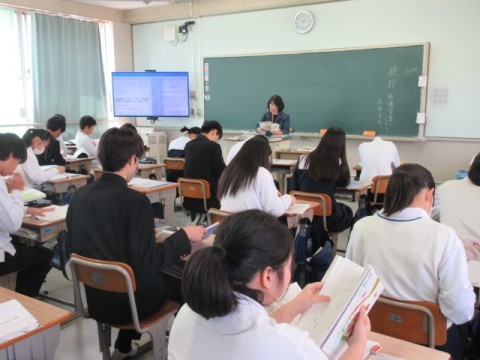 堺高校の先生が来られ,モニターを使っての授業をして頂きました。