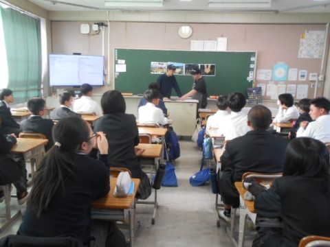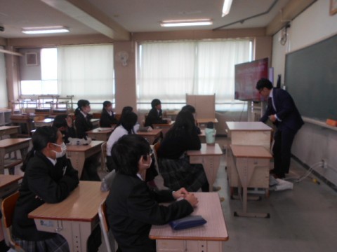 9日,今日は2年生がクラスごとにオンライン英会話を行いました。