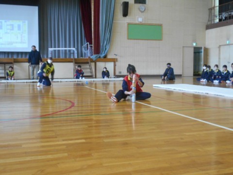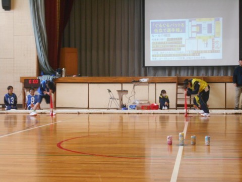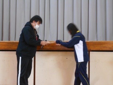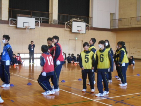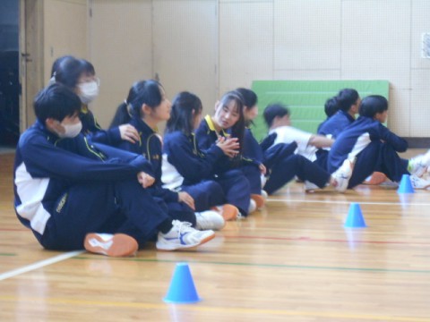 「百舌鳥坂46」は〇×クイズ大会です。〇〇先生は,オーバーハンドバスを15回できるのか?です。全生徒が〇×に移動します。